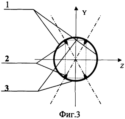 Гироскопический датчик 12 формирует трехпозиционные опорные периодические по углу крена ракеты модулирующие сигналы Су( ), Sy( ) в канале тангажа и Sz( ), Сz( ) в канале рыскания, сдвинутые относительно друг друга на угол /2, при этом сигналы Су( ) и Sy( ) в канале тангажа имеют ширину импульсов, равную 2· /3, а сигналы Sz( ) и Cz( ) в канале рыскания имеют ширину импульсов, равную /3 (фиг.4).