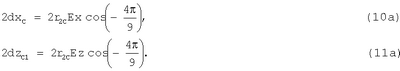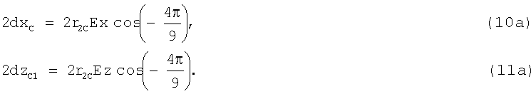 Характеристики расширенных зон обстрела, в том числе их размеры 2 dxC* и 2 dzC*, рассчитывают по формулам (8)-(11a) при заменах Ex на Ex и Ez на Ez .