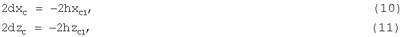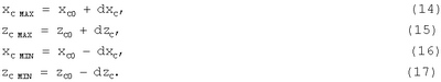х*C и z*C – координаты, которые определяют в системе координат X*CO*CZ*C с центром O*C, находящимся в центре данной ОЦ, осью O*CХ*C, направление которой параллельно направлению стрельбы, и осью O*CZ*C, направление которой перпендикулярно направлению стрельбы;