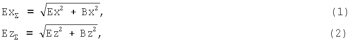 Также по географическим координатам всех ОЦ и БМ производят расчет средней дальности стрельбы, по величине которой определяют срединные ошибки стрельбы (систематические и случайные) с помощью определенных функциональных или табличных зависимостей. Суммарные срединные ошибки стрельбы Ex , Ez рассчитывают по формулам: