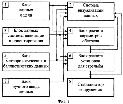Система визуализации данных (блок 2) предназначена для контроля вводимых и рассчитываемых данных. На входы блока 2 поступают данные с выходов всех блоков, кроме стабилизатора вооружения.