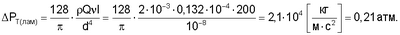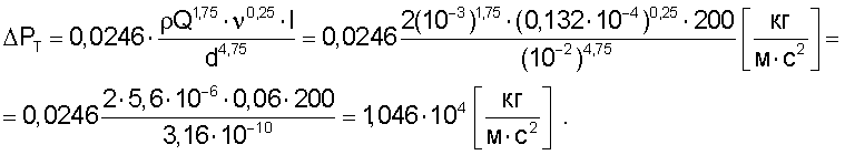 Поскольку критическое значение числа Рейнольдса Reкр=2300, то Re>Reкр, т.е. движение турбулентное, и пользуемся формулой для турбулентного потока