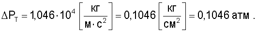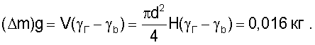 Следует отметить, что ( РT) – это результат трения газа о стенки шланга, которое направлено по направлению подачи газа, т.е. вверх. В результате вес шланга уменьшается на величину: