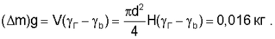 Кроме того, на шланг, наполненный газом, действует сила Архимеда и к весу шланга добавляется вес газа. Эти два обстоятельства добавляют к весу шланга величину