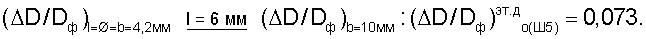 – длина дефекта 5 – lШ5=6 мм<10 мм и менее 3b=12,6 мм, что обуславливает необходимость интерполировать по l значения D/Dф отверстий и канавок шириной (диаметром) b( )=4,2 мм, соответственно, после интерполяции