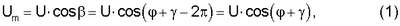 Решая треугольник векторов и с учетом угла электропередачи можно определить Um как высоту этого треугольника: