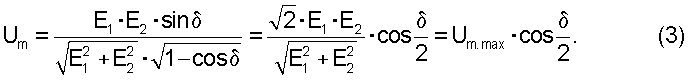 Следовательно, в соответствии с (3) и (5) и с учетом того, что Um.max и Uc.max отличаются не более чем на ±0,7% в реальном диапазоне E1 и Е2 (0,9÷1,1 в о.е.) [1, с.17], можно вместо Uc использовать Um.