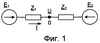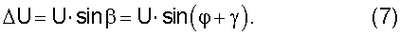 При двухмашинном АР энергосистема может быть представлена в виде эквивалентной электропередачи с ЭДС и по ее концам и сопротивлениями и от точек приложения этих ЭДС до контролируемого узла 0 с напряжением и током I (фиг.1). На векторной диаграмме электропередачи (фиг.2) кроме упомянутых параметров показан вектор напряжения в ТМН, совпадающий по направлению с осью, перпендикулярной вектору При этом проекция Um вектора на эту ось, совпадающая по модулю с может быть найдена как