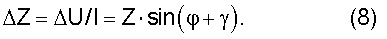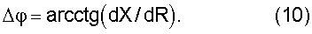 Далее по способу вычисляют корректирующий угол  как обратную тангенциальную функцию от отношения приращений реактивной dX и активной dR составляющих полного сопротивления: