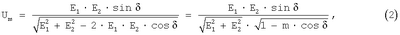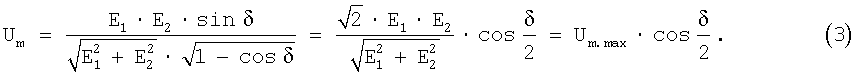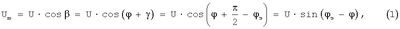 Решая треугольник векторов , и с учетом угла электропередачи , можно определить Um как высоту этого треугольника: