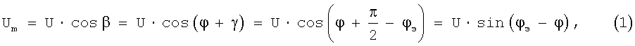 На границе этого диапазона знак , как видно из векторной диаграммы (фиг.1) и (3), может быть определен как знак Um, изменяющийся при =180°.