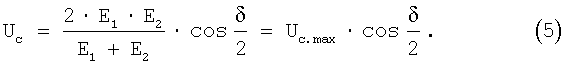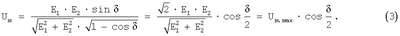 где m=2·k/(1+k2), если обозначить k=E1/E2. В реальном диапазоне k=0,8÷1,25 [1, с.19] отличие m от 1 составляет не более 2,5%. Поэтому в рабочем диапазоне =(60÷300)° можно пренебречь этой погрешностью. Тогда