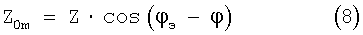 Другим вычисляемым параметром является проекция Z0m вектора полного сопротивления на ось, повернутую относительно оси jX комплексной плоскости (R, jX) на тот же расчетный угол , который используется в (1) при определении Um ( = /2- э).