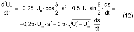 Далее вычисляют вторую производную от Um по времени, которая может быть определена путем дифференцирования (9) по следующей формуле: