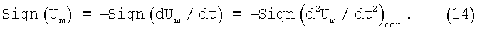 Признаком возникновения АР, фиксируемых по предлагаемому способу, является несовпадение знака Um со знаком его первой и скорректированной второй производных: