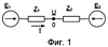 При двухмашинном АР энергосистема может быть представлена в виде эквивалентной электропередачи с ЭДС и по ее концам и сопротивлениям и от точек приложения этих ЭДС до контролируемого узла 0 с напряжением и током (фиг.1). На векторной диаграмме электропередачи (фиг.2) кроме упомянутых параметров показан вектор напряжения в точке с минимальным напряжением (ТМН), совпадающий по направлению с осью перпендикулярной вектору . При этом проекция Um вектора на эту ось, совпадающая по модулю с может быть найдена как
