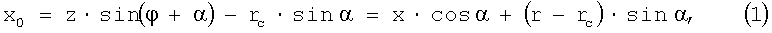 В полученной системе координат электропередачи (фиг.1) может рассматриваться как однородная ( 1= 2= ). При этом минимальное значение х0 ( =180°) соответствует сопротивлению от точки минимального напряжения (ТМН) на однородной электропередаче, где напряжение равно нулю при =180° (r0=0).