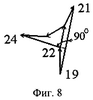 Согласно фиг.3 конденсаторы возбуждения С подключены к выводам 20, 22, 24, а нагрузка R подключена к выводам 19, 21, 23. При таком включении конденсаторов дифференциальное рассеяние обмотки при нагрузке уменьшается, что подтверждают диаграммы Гёргеса на фиг.4 и 5 обмотки при 36 пазах статора и на фиг.6 и 7 обмотки при 48 пазах статора, а это, в свою очередь, приводит к уменьшению индуктивного сопротивления обмотки и к уменьшению падения напряжения на ней. Токи нагрузки отражены в условном ряду сторон катушек.
