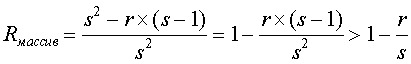 Матрица проверки на четность кода массива (s, r) имеет s2 столбцов и r×s строк, а ее ранг становится r×(s-1). Причина, по которой ранг матрицы проверки на четность кода массива (s, r) становится r×(s-1), состоит в том, что в случае, где r частичных матриц в направлении строк матрицы проверки на четность кода массива (s, r), если s строк в каждой из частичных матриц суммируются, генерируется матрица, в которой все элементы имеют значение 1. То есть, из-за того, что генерируются r строк, в которых все элементы имеют значение 1, можно понять, что имеется r зависимых строк. Поэтому скорость Rмассив кодирования кода массива (s, r) можно выразить уравнением (2):