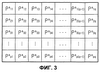 Фиг.3 представляет собой схему, иллюстрирующую матрицу проверки на четность обычного блокового кода НППЧ. Перед тем, как дать описание фиг.3, следует отметить, что блоковый код НППЧ является новым кодом НППЧ, для которого учитывались не только эффективное кодирование, но также эффективное хранение и улучшение рабочих характеристик матрицы проверки на четность, и что блоковый код НППЧ является кодом НППЧ, расширенным путем обобщения структуры регулярного кода НППЧ. На фиг.3 матрица проверки на четность блокового кода НППЧ разделена на множество частичных блоков, и матрица перестановок отображается в каждый из этих частичных блоков. На фиг.3 «Р» представляет матрицу перестановок размером NS×NS, а верхний индекс (или экспонента) aij матрицы перестановок Р равна либо 0 aij NS-1, либо aij= . На фиг.3 р представляет число строк частичных блоков, а q представляет число столбцов частичных блоков. «i» означает, что соответствующая матрица перестановок располагается в i-й строке частичных блоков матрицы проверки на четность, а «j» означает, что соответствующая матрица перестановок располагается в j-м столбце частичных блоков матрицы проверки на четность. То есть, есть матрица перестановок, расположенная в частичном блоке, пересекающемся i-й строкой и j-м столбцом.