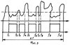 На выходах смесителей 241-24n стоят полосовые фильтры 291-29n с полосой пропускания f, тогда общая полоса всех n фильтров будет fn= F. С выходов полосовых фильтров 291-29n сигналы поступают на сигнальные входы электронных ключей 301-30n. Каждый из этих ключей открывается сигналом с соответствующего порогового блока 271-27n, на входе которого в данный момент времени присутствует сигнал с коммутатора частот гетеродина 25 с одной из соответствующих частот гетеродина fг1-fгn; как показано на фиг.5.
