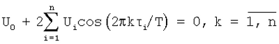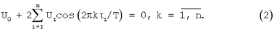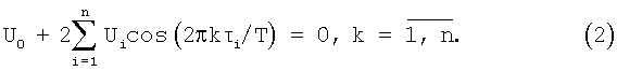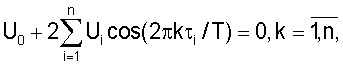 Способ многоканальной передачи информации с использованием в качестве переносчика информации импульсных сигналов сложной формы (ИССФ), заключающийся в формировании ИССФ, их модуляции и последующем восстановлении путем демодуляции с помощью фильтров низкой частоты (ФНЧ), отличающийся тем, что в каждом канале ИССФ формируют в виде последовательности элементарных импульсов одинаковой длительности , образованной из периодической последовательности прямоугольных импульсов с амплитудой U0 и периодом Т и n периодических последовательностей с периодом Т сдвоенных прямоугольных импульсов с амплитудами Ui, расположенных симметрично относительно импульсов с амплитудами U0 со сдвигом во времени на величину i, при этом параметры указанных ИССФ определяют из решения системы уравнений