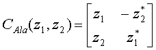 Описание одного из решений задачи разнесения при передаче приведено в патенте США № 6185258 Аламути (Alamouti) с соавторами, который включен в настоящую заявку путем ссылки. Приведенное ниже уравнение (1) дает матрицу СAla Аламути, в которой каждая строка соответствует передающей антенне или лучу, а каждый столбец соответствует периоду символа.