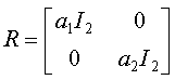 в котором C1 и C2 представляют собой два ортогональных кода разнесения передачи, например, матрицы Аламути типа 2×2. Следует подчеркнуть, что для простоты не показано нормирование, выполняемое делением на с целью обеспечения искомой энергии символов.