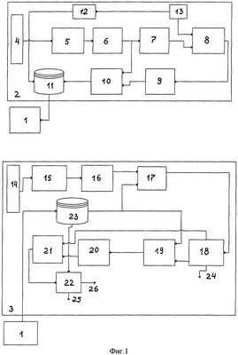 Заявленная система доступа содержит (см. Фиг.1) устройство 1 хранения информации, модуль 2 представления биометрических данных и криптографического ключа, модуль 3 выделения биометрических данных и криптографического ключа, модули 4 и 14 ввода биометрического образца, блоки 5 и 15 выделения признаков, биокодеры 6 и 16, блоки 7 и 20 реализации хэш-функции, блок 13 генерации криптографического ключа, блок 12 генерации эталонного образца, шифратор 8, сумматоры 10, 17, 19 по модулю два, дешифратор 21, кодер 9 и декодер 18 блочного кода, блоки 11 и 23 памяти, блок 22 тестирования ключа, “отказные” выходы 24 и 25, “разрешающий” выход 26.
