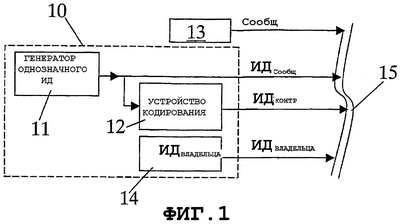14. Устройство по п.12, отличающееся тем, что выдает составной идентификатор (ИДТ), составленный из объединения однозначного идентификатора сообщения (ИДСообщ) и идентификатора (ИДКОНТР), предназначенного для контроля опознавательного кода владельца сообщения.