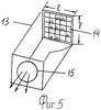 Блоки 8 регистров идентичны /фиг.3 и 4/, каждый включает первый 9 и второй 10 ключи, распределитель 11 импульсов и восемь регистров 121-8. Информационным входом блока 8 являются поразрядно объединенные третьи /информационные/ входы разрядов восьми регистров 12. Выходами блока 8 являются выходы всех разрядов параллельно восьми регистров 12, всего 12800 выходов. Управляющими входами являются: первым – первый управляющий вход первого ключа 9, вторым – сигнальный вход /Uвыд/ второго ключа, третьим – сигнальный вход /Uд/ первого ключа 9, четвертым – первый управляющий вход второго ключа 10, подключенный к управляющему выходу последнего блока 81199 регистров. Последний /1600-й/ выход распределителя 11 импульсов подключен к второму управляющему входу ключа 9 и является управляющим выходом блока 8 регистров, подключенный к первому управляющему входу первого ключа 9 в следующем блоке 82 регистров. Выход первого ключа 9 подключен к входу распределителя 11 импульсов, выходы которого последовательно с первого по 1600-й подключены к первым управляющим входам разрядов параллельно восьми регистров 121-8. Выход второго ключа 10 подключен параллельно к вторым управляющим входам всех разрядов восьми регистров 12 и к второму управляющему входу ключа 10. Блок 2 формирователей импульсов каждый включает формирователи импульсов по числу элементов разрешения /пикселов/ в кадре и по числу разрядов в коде 15347200 /1199×1600×8/. Назначение формирователей импульсов выдавать управляющие сигналы на запитывание светодиодов в СД-ячейках для непрерывного излучения ими в течение длительности кадра /8,3 мс/. Амплитуда управляющих сигналов соответствует рабочему напряжению светодиодов, длительность сигнала соответствует длительности кадра /8,3 мс/, форма управляющего импульса прямоугольная. СД-экран 3 представляет совокупность светодиодных ячеек по числу элементов /пикселов/ разрешения в кадре 1918400 /1199×1600/. Каждая СД-ячейка формирует один пиксел изображения и состоит /фиг.5/ из непрозрачного корпуса 13 формой прямоугольного параллелепипеда, матрицы 14 светодиодов трех основных цветов /R, G, В/ и соответствующей формы микролинзы 15, выполняющей суммирование потоков излучений от светодиодов матрицы и формирования из них пиксела требуемого размера. Светодиодов красного излучения 8 /по числу разрядов в коде/, зеленого 8, синего 8, всего 24 светодиода, которые расположены в фокальной плоскости микролинзы 15. Светодиоды бескорпусного микроминиатюрного исполнения, расположены /фиг.6/ в пять рядов по пять колонок. Диаметр излучающей части светодиода 0,15 мм /чем меньше, тем лучше для разрешения и уменьшения размеров СД-ячейки/. Форма матрицы – квадрат со стороной l=0,7 мм, площадью в 0,5 мм2. Торцевые стороны корпуса ячейки квадраты по 0,8 мм. Глубина корпуса соответствует фокусному расстоянию микролинзы 15 /несколько миллиметров/. Излучаемые матрицей три цветовых потока модулируются по яркости преобразованием “код – яркость излучения”. Модуляция выполняется применением на каждом светодиоде ослабляющего нейтрального светофильтра, плотность которого соответствует весу разряда в коде, к которому принадлежит конкретный светодиод. Кратность ослабления излучения светодиодов осуществляется соответственно коэффициентам двоичных разрядов кода, к которым принадлежат светодиоды.