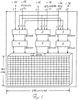 СД-экран 7 представляет совокупность светодиодных ячеек по числу элементов /пикселов/ разрешения в кадре 1309440 /1023×1280/. Каждая СД-ячейка формирует один пиксел изображения и состоит из /фиг.5/ непрозрачного корпуса 13, матрицы 14 светодиодов трех основных цветов /R, G, В/ и микролинзы 15, выполняющей суммирование потоков излучения от светодиодов матрицы 11 и формирование из них пиксела требуемого размера. Светодиодов красного излучения в матрице 8 /по числу разрядов в коде/, зеленого – восемь, синего тоже восемь. Время отклика светодиодов на управляющий сигнал практически нулевое, менее 1 мкс [4, с.9]. Матрица 14 расположена в фокальной плоскости микролинзы 15 и включает 24 микроминиатюрных светодиода. Светодиоды микроминиатюрного исполнения с диаметром излучающей части 0,1 мм расположены /фиг.6/ в пять рядов по пять колонок. Форма матрицы – квадрат l со стороной 0,6 мм, площадью 0,36 мм2. Форма корпуса 13 СД-ячейки – прямоугольный параллелепипед, торцевые стороны квадрата по 0,7 мм. Глубина корпуса соответствует фокусному расстоянию микролинзы 15 /несколько миллиметров/. Излучаемые матрицей три цветовых потока модулируются по яркости преобразованием “код – яркость излучения”. Модуляция выполняется применением на каждом светодиоде ослабляющего нейтрального светофильтра, плотность которого соответствует весу разряда в коде, к которому принадлежит светодиод. Кратность ослабления излучения светодиодов осуществляется соответственно коэффициентов двоичных разрядов кода, к которым принадлежит светодиод. Светодиод первого /старшего/ разряда кода не имеет светофильтра, т.е. его светофильтр кратности 0Х, светодиод второго разряда кода имеет светофильтр плотностью 2Х, светодиод третьего разряда кода имеет светофильтр 4Х и т.д., светодиод восьмого /младшего/ разряда имеет светофильтр 128Х.