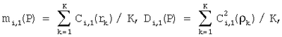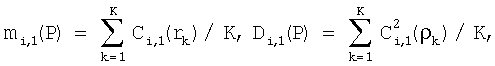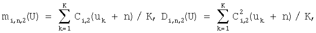 где Ci,1( k) – значение i-го коэффициента в блоке шаблона с номером k, полученного с использованием меньшего числа блоков данных, K=min(K1, K2), величины mi,n,2(U), Di,n,2(U), соответствуют шаблону, полученному с использованием большего числа блоков данных, и вычисляются по формулам
