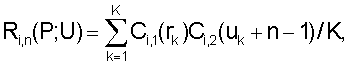 где Ci,2(uk+n) – значение i-го коэффициента в блоке шаблона с номером (uk+n), полученного с использованием большего числа блоков данных, а функция Ri,n(P;U) вычисляется по формуле