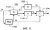 Фиг.11 показывает схематичный вид устройства для кодирования многоканального сигнала согласно пятому варианту осуществления изобретения. Это устройство принимает многоканальный сигнал х=(x1,…,xn), содержащий n каналов. Устройство содержит анализатор (РСА) 1100 главного компонента для выполнения анализа главного компонента сигнала х, приводящего к весовому вектору w=(w1,…,wn), для преобразования входного сигнала х в сигнал главного компонента у и n-1 остаточных сигналов r1, r2,…,rn-1. Устройство дополнительно содержит схему 1101 преобразования (R), принимающую входной сигнал х и определенный весовой вектор w и генерирующую сигналы y и r1,…,rn-1 согласно вышеприведенному преобразованию. Преобразованные сигналы кодируются соответствующими кодерами (Е) 202 и 1102 и объединяются схемой 204 объединения (С) сумматора вместе с весовым вектором w, как описано в сочетании с фиг.2. Согласно этому варианту кодер 1102 адаптирован для кодирования остаточных сигналов r1,…,rn-1. Например, кодер 1102 может содержать n-1 параллельных кодеров, причем каждый из них кодирует один из остаточных сигналов, как описано в сочетании с кодером 202.