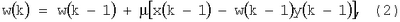где w(k)=(wL(k),wR(k)) соответствует оценке в момент времени k. Вышеприведенная итерация может, например, инициироваться множеством малых случайных весов w(0) или любым другим подходящим образом. Вышеприведенный вычисленный весовой вектор может использоваться для вычисления повернутого сигнала согласно у(k)=wT(k)x(k). Альтернативно, итерация по уравнению (2) может быть выполнена на основе блока, например, для блока N выборок, где N зависит от конкретной реализации, например, N=512, 1024, 2048 и т.д. В этом варианте осуществления вычисленный весовой вектор w(N) для блока может использоваться в преобразовании всех выборок этого блока согласно у(k)=wT(N)x(k).
