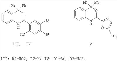 Применение 2-(3-нитрофенил)-4,4-дифенил-1,2-дигидро-4Н-3,1-бензоксазина III, 2-(3-нитро-2-бромфенил)-4,4-дифенил-1,2-дигидро-4Н-3,1-бензоксазина IV, 2-(5-метилфур-2-ил)-4,4-дифенил-1,2-дигидро-4Н-3,1-бензоксазина V