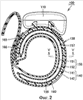 На внешней стороне воздушного мешка 150 расположен изогнутый упругий элемент 160, называемый «упругим элементом», который изогнут в виде кольца и способен упруго деформироваться в радиальном направлении. Изогнутый упругий элемент 160 присоединен к внешней поверхности внешней стенки воздушного мешка 150 с помощью соединительного элемента, такого как двусторонняя липкая лента (не показана). Изогнутый упругий элемент 160 имеет конфигурацию, позволяющую сохранять его кольцевую форму, соответствующую контуру запястья, и облегчать наложение манжеты 130 на участок измерения самим пациентом. Изогнутый упругий элемент 160 выполнен из такого полимера, как полипропилен или т.п., чтобы обеспечивать достаточное упругое усилие.