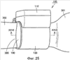 Если при накачанном состоянии воздушного мешка 150 приложить внешнее усилие к внешнему покрытию 142 чехла 140 в направлении, параллельном осевому направлению запястья 300, то внешняя часть манжеты 130 может сместиться в сторону в осевом направлении запястья 300, в то время как внутренняя часть манжеты 130 не подвергнется такому боковому смещению, так как она находится в контакте с запястьем 300. В результате этого часть манжеты 130 будет выпячиваться, как показано позицией 190 на фиг.25. Даже если не прилагать никакого внешнего усилия, равенство давления воздушного мешка 150 будет нарушено из-за наклонной формы поверхности запястья 300, что также может вызывать боковое смещение.
