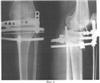Способ проиллюстрирован сделанными в процессе лечения рентгенограммами нижней левой конечности (в разогнутом состоянии) больной М.:
