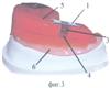 Устройство поясняется графическим материалом. На фиг.1 изображено предлагаемое устройство, вид сбоку; на фиг.2 – то же, но вид сверху. На фиг.3 изображен нижний окклюзионный валик на жесткой индивидуальной ложке с установленными устройствами для предотвращения раздавливания восковых окклюзионных валиков.