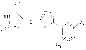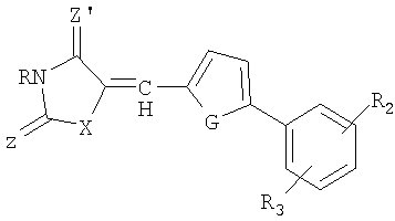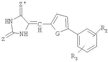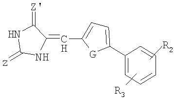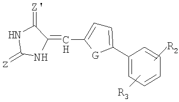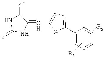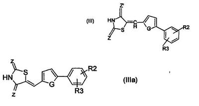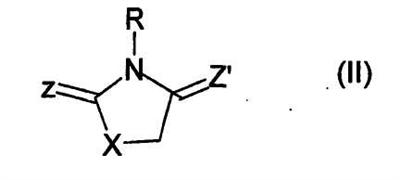 где Z, Z’и X независимо обозначают S или O и R обозначает H или насыщенный линейный или разветвленный С1-С10-алкильный радикал. Х может также обозначать NH. Преимущественно Z и Z’ обозначают кислород, что соответствует циклу 1,3-тиазолидин-2,4-диона.