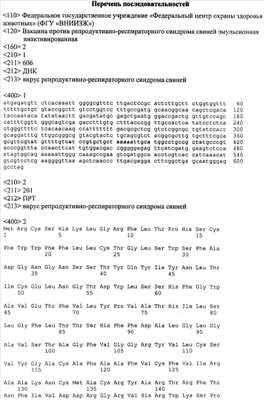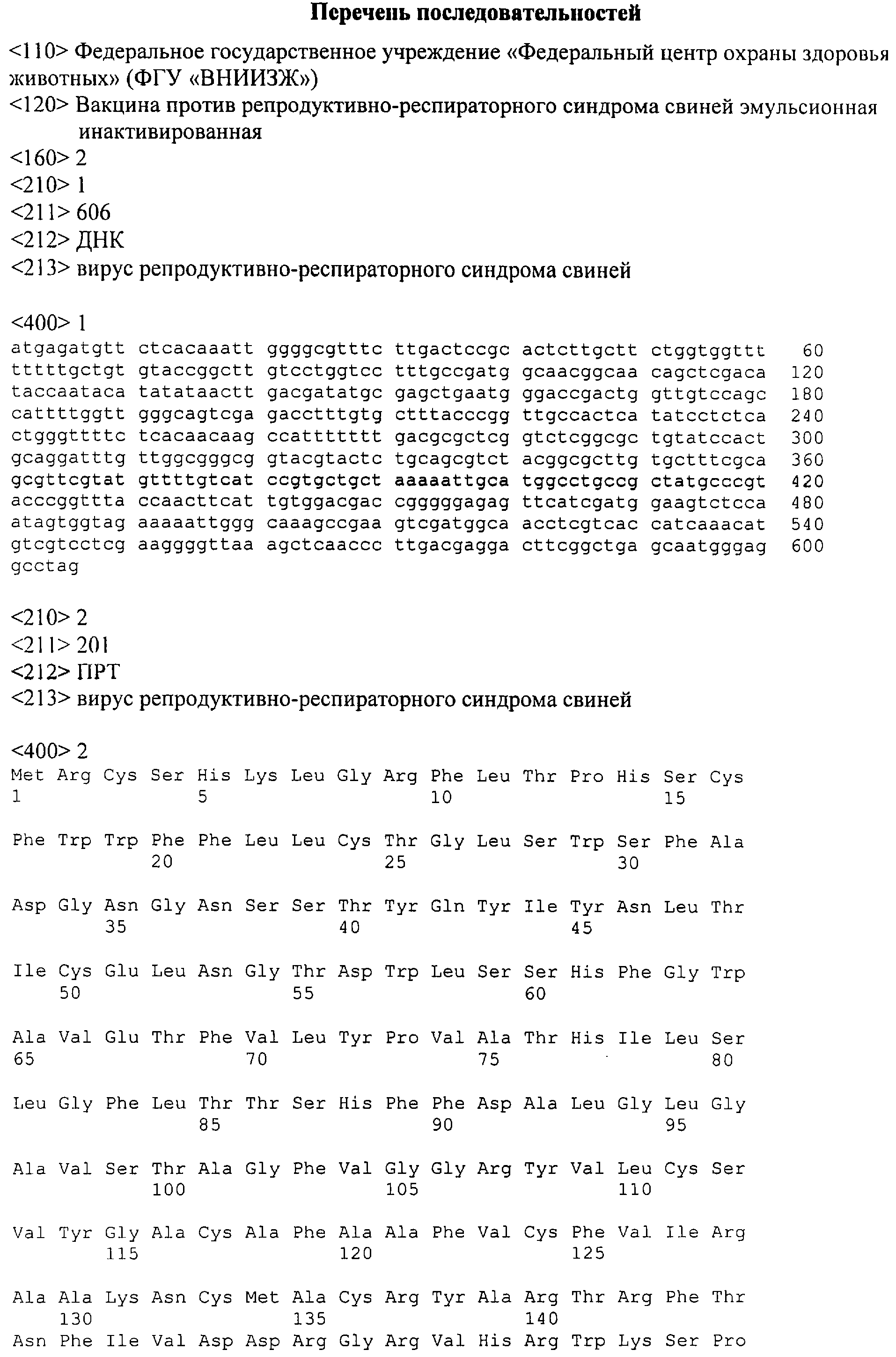 (54) ВАКЦИНА ПРОТИВ РЕПРОДУКТИВНО-РЕСПИРАТОРНОГО СИНДРОМА СВИНЕЙ ЭМУЛЬСИОННАЯ ИНАКТИВИРОВАННАЯ