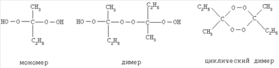 где R1 и R2 являются одинаковыми или различными, и они независимо представляют (C1-C20) алкильную группу, предпочтительно (C1-C6) алкильную группу. Такие алкильные группы могут быть линейными или разветвленными, насыщенными или ненасыщенными, незамещенными или замещенными разнообразными органическими или неорганическими группами. Одним из предпочтительных пероксидов диалкилкетонов, который охватывается настоящим изобретением, является пероксид метилэтилкетона или его изомер, или смесь его изомеров. В контексте изобретения предусматривается применение самого пероксида диалкилкетона или изомера, или его смеси изомеров. Термин “изомер” относится к любому возможному изомеру, является ли он изомером полимеризации, структурным изомером или стереоизомером (энантиомером в случае, когда могут существовать один или более хиральных атомов углерода, или диастереоизомером) и так далее. В случае пероксида этилметилкетона известны следующие изомерные формы: Для димера также известны, в частности, D, L и мезо- стереоизомеры. В другом специфическом воплощении настоящего изобретения пероксид диалкилкетона, описанный выше, используется в очень различных приложениях и в областях, включающих терапию человека и животных, гигиену человека и животных, промывание и дезинфекцию здоровой и поврежденной кожи человека или животных, упаковки, обертки, медицинские или промышленные инструменты, санитарные поверхности, среду учреждений здравоохранения, помещения, поверхности вообще, промышленные установки, рефрижераторные башни, трубопроводы систем кондиционирования воздуха, машины и установки для производства пищевых продуктов, установки в сельском и рыбном хозяйстве, санитарные системы горячего водоснабжения, очистку питьевой воды для потребления людьми и животными или любое другое использование в промышленности, домашнем хозяйстве, экологии, сельском хозяйстве, лесном хозяйстве, городской, фармацевтической, гражданской, военной, полицейской, научной, технологической областях, в космическом пространстве, на Земле, в области здравоохранения и профилактики заболеваний, для которых продемонстрирована полезность биоцидных свойств пероксида диалкилкетона. В терапии человека и животных пероксид диалкилкетона может быть использован как бактерицидный, фунгицидный, спорицидный, микобактерицидный, вируцидный, протозоацидный, альгицидный, прионоцидный и антипаразитарный агент путем местного нанесения на инфицированную или инвазированную кожу, в различных фармацевтических композициях и формах, включая таковые, что упомянуты здесь: помада, крем, лосьон, раствор, мазь, порошок, твердый брусок, суспензия, эмульсия, небулайзер или спрей. Подобным образом пероксид диалкилкетона может быть использован как бактерицидный, фунгицидный, спорицидный, микобактерицидный, вируцидный, протозоацидный, альгицидный, прионоцидный и антипаразитарный агент путем энтерального, парентерального, орального, ректального, вагинального, внутримышечного, внутрикожного, внутривенного или внутриартериального введения с целью прекращения инфекции, обусловленной бактериями, микобактериями, грибами, вирусами, прионами, простейшими и так далее, в различных фармацевтических составах и формах, включая те, которые упомянуты здесь: помада, крем, лосьон, раствор, маз