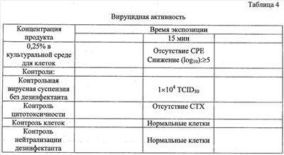 Заключение Продукт настоящего изобретения обладает микобактерицидным эффектом при концентрации 1% в течение 15 и 30 минут, а при концентрациях 2% и 4% микобактерицидный эффект может наблюдаться при времени экспозиции 5, 15 и 30 минут.