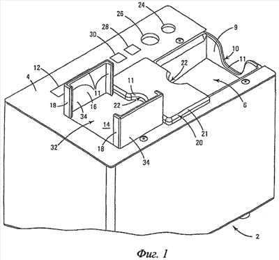 На Фиг.6 показан вид в перспективе с поднятой крышкой одного варианта исполнения аппарата для тасования в соответствии с данным изобретением.