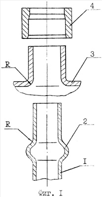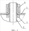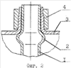 Предварительно на наружной поверхности трубы 1 методом пластического деформирования, например раскаткой, выполняют кольцевой уступ 2 в виде зига тороидальной формы – фиг.1, а в случае использования труб малого диаметра на наружной поверхности трубы 1 выполняют уступ 2 в виде неподвижно закрепленного кольца – фиг.3. На трубной решетке 3 выполняют отверстие с отбортовкой. На кольцевом уступе 2 трубы 1 и внутренней поверхности отбортованного отверстия выполняют взаимосогласованные сопряжения (одинакового радиуса R). Затем устанавливают трубу 1 в отверстие трубной решетки до упора в кольцевой уступ 2 с одновременным нанесением герметика в зазоры между соединяемыми поверхностями. Закрепление трубы в отверстии трубной решетки осуществляют путем позонного деформирования трубы 1 и отбортованного отверстия с помощью пресс-шайбы 4 – фиг.2, 4.