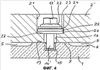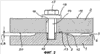 Наконец, под скользящей шайбой 25 включен упругий кольцевой элемент 26, через который может создаваться необходимое предварительное натяжение резьбового соединения. Упругий кольцевой элемент 26 представляет собой, например, кольцо из эластомерного материала, например резины, или из одного или нескольких пружинящих элементов. Упругий кольцевой элемент 26 опирается затем на дно 27 отверстия 21 с углублением. Для обеспечения определенного относительного движения крепежного болта 14′ в сквозном отверстии 16′ в переходной пластине 2 наружный диаметр покрытой вспомогательным средством 24 скольжения шайбы 23 меньше наружного диаметра смежной скользящей шайбы 25. Скользящая шайба 25 и упругий кольцевой элемент имеют незначительно меньший наружный диаметр по сравнению с диаметром отверстия с углублением так, что оказываемое крепежным болтом 14′ зажимное усилие передается на общее дно 27 отверстия. Тем самым создаются, с одной стороны, небольшие локальные поверхностные надавливания и, с другой стороны, задается ориентирование положения скользящей шайбы 25 относительно покрытой PTFE-материалом шайбы 23.