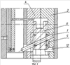 Стержни 3 служат для оформления поднутрений в отливке. Они установлены во внутреннем отверстии ползуна 5 посредством направляющих винтов 9 и упругих элементов 10. Стержни 3 имеют возможность перемещения перпендикулярно оси ползуна 5 за счет направляющих винтов 9 и упругих элементов 10, в результате этого внутренние наклонные поверхности стержней 3 прижимаются к наклонным поверхностям клина 6, обеспечивая между ними постоянный контакт.