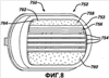 Части 322 и 328 и соединительная часть 330 вместе окружают часть 226, таким образом предоставляя опору части 226, но поверхность части 226 открыта. Части 322, 226 и 328 каждая могут быть, например, между приблизительно 1,20 дюйма и приблизительно 1,35 дюйма (более предпочтительно между приблизительно 1,25 дюйма и приблизительно 1,275 дюйма) длиной и между приблизительно 0,07 дюйма и приблизительно 0,11 дюйма (более предпочтительно между приблизительно 0,085 дюйма и приблизительно 0,095 дюйма) шириной. Части 322, 226 и 328 каждая содержат полимерную основу, например, из нерастворимого в воде полимера, как будет обсуждаться ниже. Нерастворимый в воде полимер может быть различен или такой же, как нерастворимые в воде полимеры в других частях. Кроме того, каждая часть может содержать вспомогательное средство для бритья, и вспомогательное средство для бритья в одной части может быть отличным или таким же, как вспомогательного средства для бритья в других частях.
